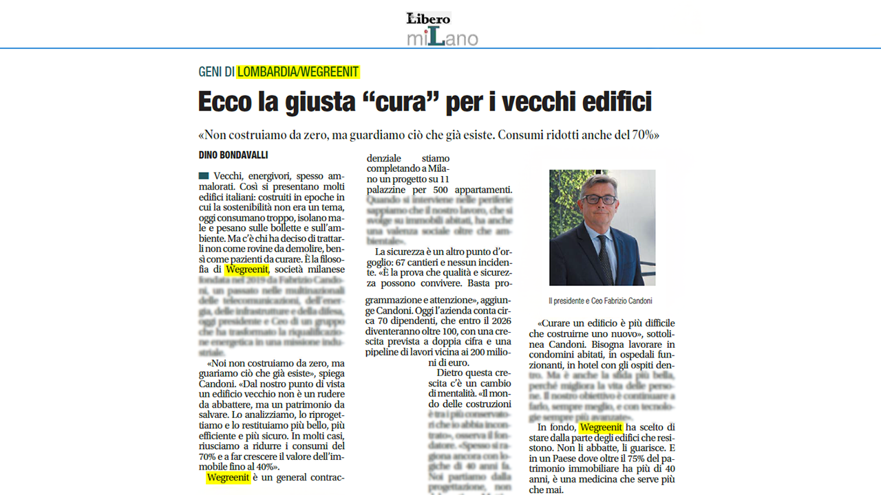 #WegreenitSays Dans la rubrique Geni di Lombardia de Libero Milano, notre CEO Fabrizio Candoni a présenté la philosophie qui guide chaque projet de Wegreenit, une approche qui place au centre le soin des bâtiments existants plutôt que la construction neuve....